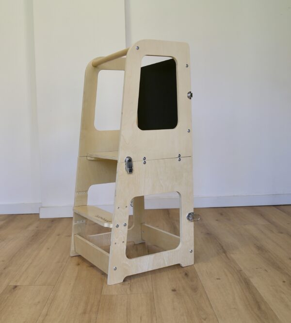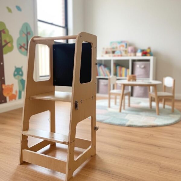- Pizarra Creativa Integrada: La parte trasera de la torre (que se convierte en el respaldo de la silla) incorpora una pizarra lista para tizas. ¡Un lienzo instantáneo para la creatividad y el juego!