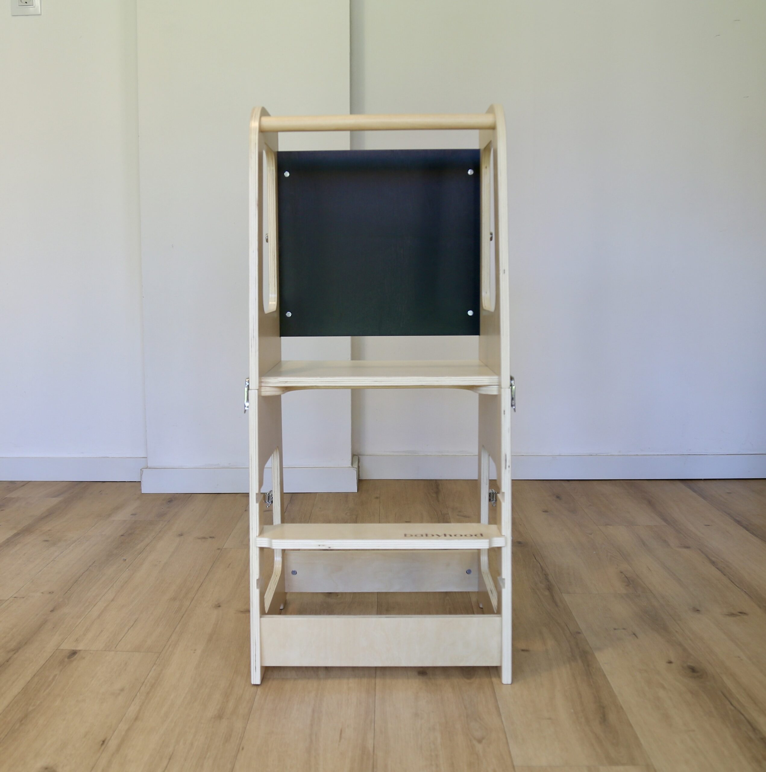 Fomenta la independencia y la participación de tu hijo con esta torre de aprendizaje evolutiva. Inspirada en la filosofía Montessori, permite que los pequeños estén a la altura de los adultos de forma segura en la cocina o el baño, transformándose fácilmente en un espacio de juego y estudio.